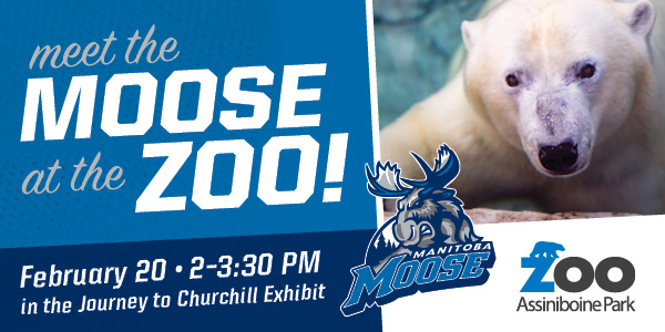 Drop by the Journey to Churchill Exhibit and visit the Moose between 2:00 and 3:30 p.m. on Monday, Feb. 20. Fans that attend will have the opportunity to win Moose prizes, Moose tickets and even a full team autographed jersey!