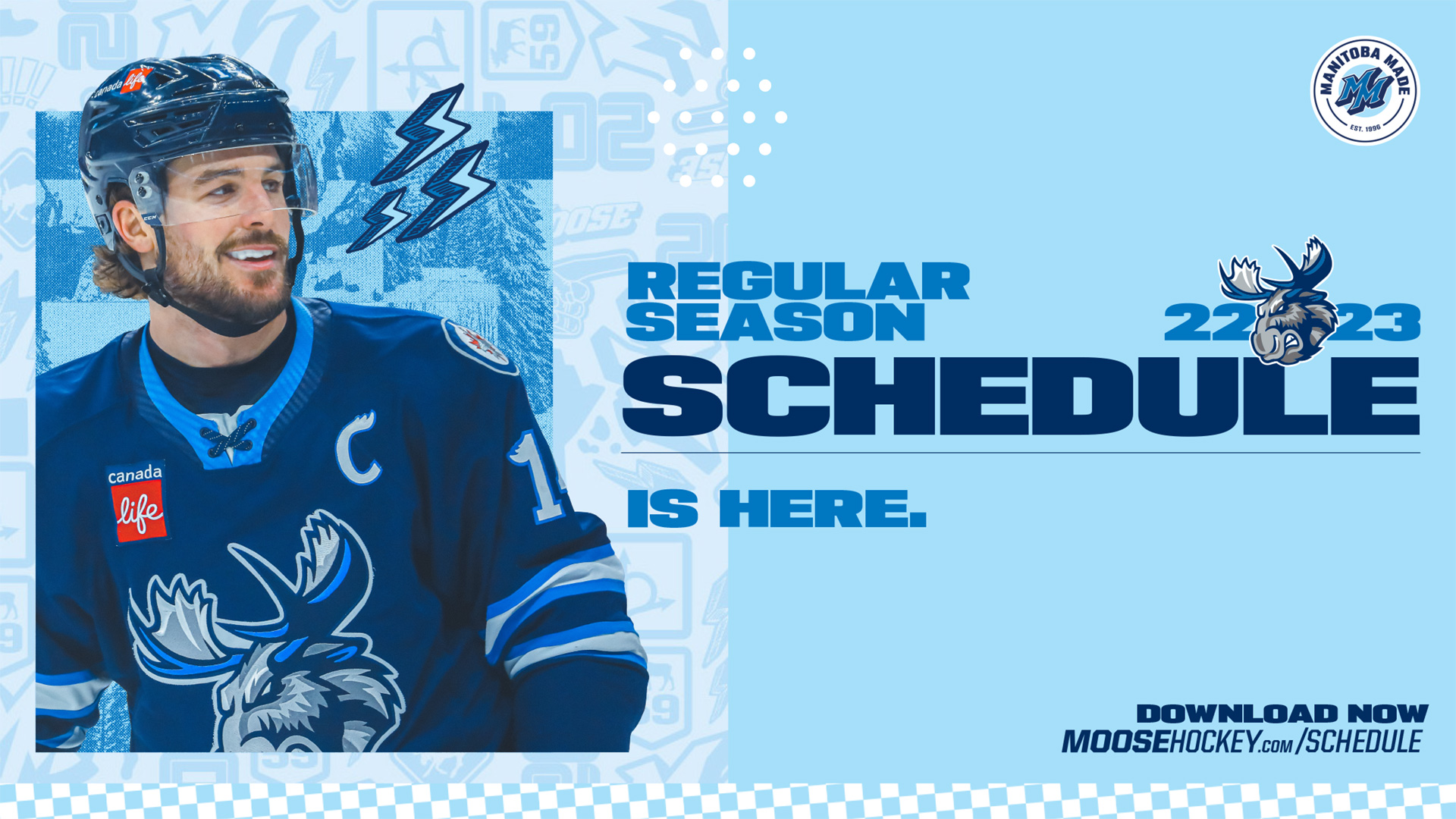 The Manitoba Moose Hockey Club, in conjunction with the American Hockey League, revealed today the team’s 72-game schedule for the 2022-23 Regular Season. The Moose also announced the 2022-23 Promotional Schedule.