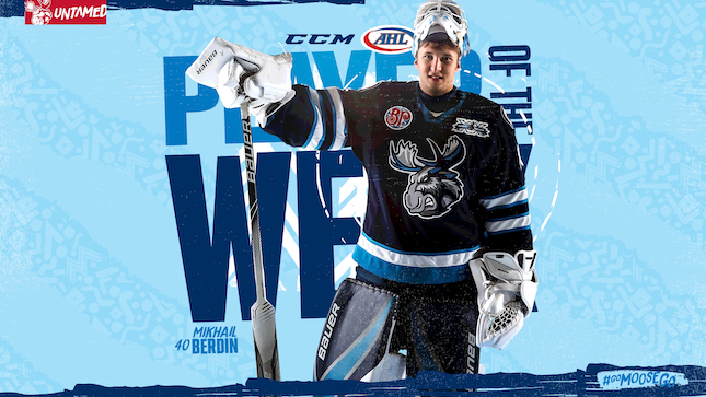 Berdin, 21, led the Moose to four wins this past week with a 4-0-0 record, supported by a 1.24 goals-against average and a .967 save percentage. He recorded a league-high 148 saves on 153 shots during the week.