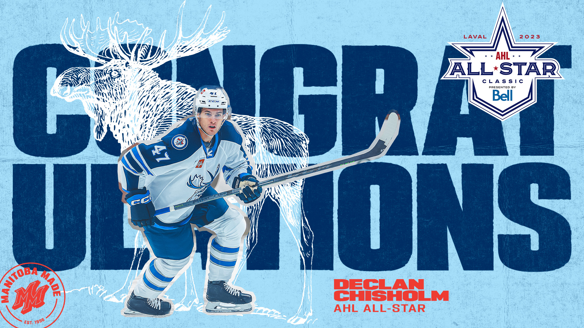 The Manitoba Moose Hockey Club, in conjunction with the American Hockey League, announced today Moose defenceman Declan Chisholm has been named to the 2023 AHL All-Star Classic taking place Feb. 5-6 in Laval, Que.