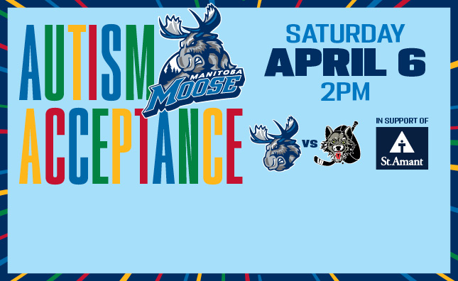 Tickets for Manitoba Moose home games, including the Autism Acceptance Game on Saturday, April 6, are available now at MooseHockey.com/TICKETS.