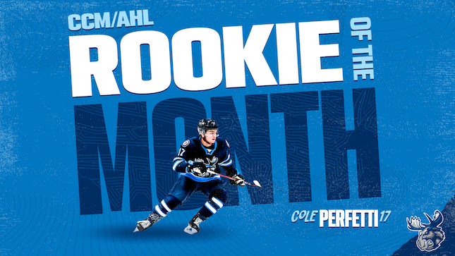 The American Hockey League announced today Moose forward Cole Perfetti has been named the CCM/AHL Rookie of the Month for April.