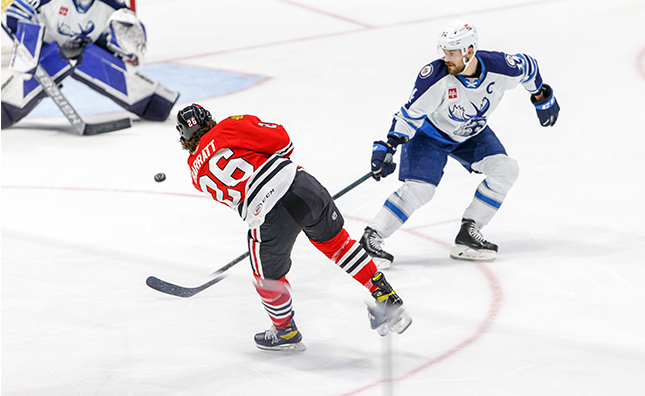 Rockford opened the scoring before the first was five minutes old. Jakub Galvas put the puck on net and the rebound popped out to Dimitri Osipov. The forward had a pair of whacks at the disc before the second chance slid past Mikhail Berdin for a 1-0 Rockford lead. The IceHogs added to their score with under four to play in the period. Andrei Altybarmakian grabbed the puck at the top of circle and wired a hard shot from the dot past Berdin to push Rockford’s lead ahead to 2-0. Rockford grabbed another tally 72 seconds laster, as Josiah Slavin pounced on a Moose turnover and found twine to drive the score to 3-0.