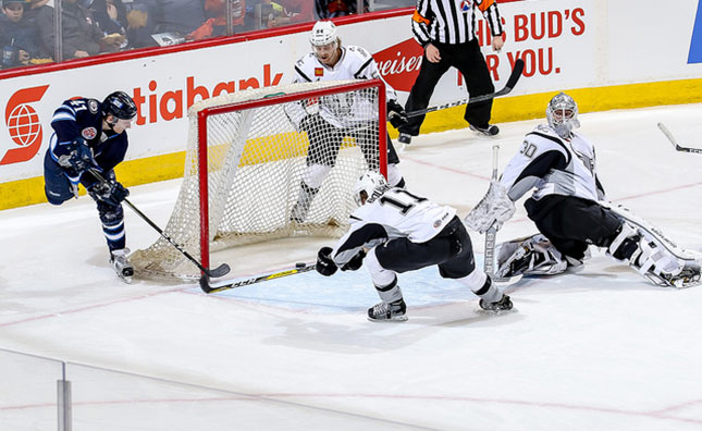 The atmosphere was great as nearly 7,000 fans made their way to downtown Winnipeg that Saturday night, but Manitoba fell behind 1-0 just over four minutes after the opening faceoff.