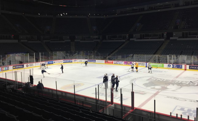 The Winnipeg Jets’ American Hockey League team practiced in Grand Rapids, Mich this afternoon ahead of Wednesday’s date with the Red Wings’ affiliate.