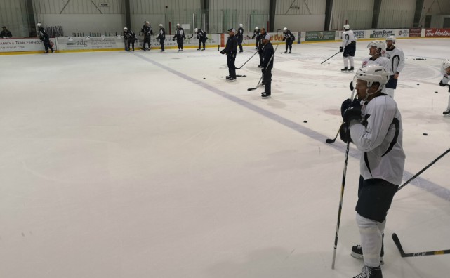 Yesterday was a travel day for the Manitoba Moose as they flew home from Chicago. Today the team was back on ice for a workout at the club’s west end practice facility – well aware things weren’t about to slow down.