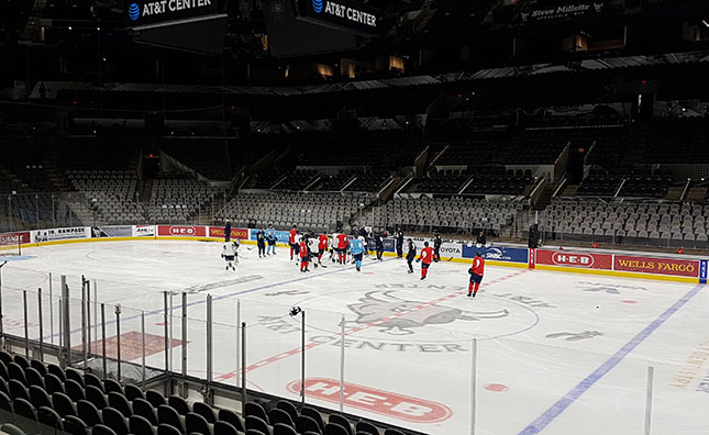 After a long travel day on Sunday, the Manitoba Moose got out on the practice ice today at San Antonio’s AT and T Center in preparation for tomorrow morning’s 10:30 A-M matchup against the Rampage.