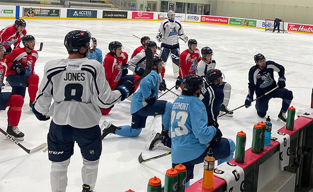 The new face is Tyler Penner, who joined camp on a tryout agreement. The Winnipegger has been rising the professional ranks after spending 2020-21 in the SPHL, followed by 33-points in 72 games with the ECHL's Utah Grizzlies in 2021-22. The former Steinbach Pistons captain is soaking in the opportunity to skate with the team he used to watch as a kid.