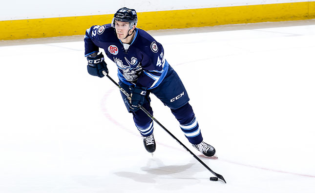 Peter’s first full season in pro hockey coincided with the return of the Moose to Manitoba. It featured a different kind of schedule than he’d experienced at Colorado College, a lengthy injury absence, and plenty of learning on the job.
