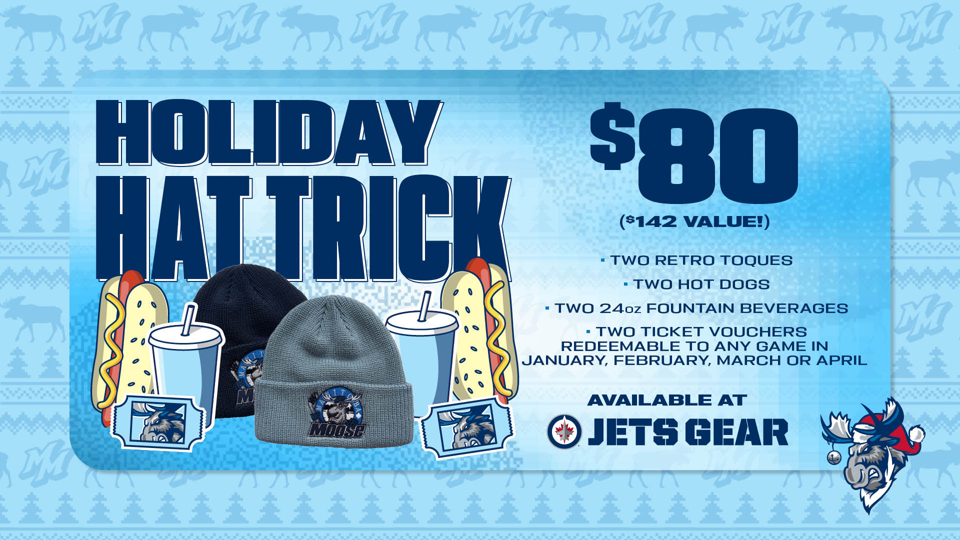 Hat Tricks can also be purchased at any Jets Gear locations and at every Moose home game until December 31st. Visit the sales team outside of section 103 to purchase at a Moose game to save the fees!