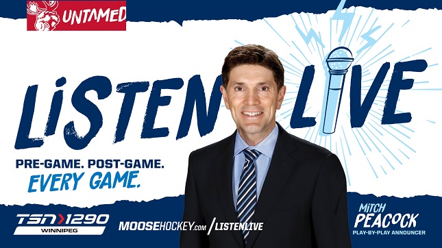 Mitch Peacock returns for his fourth season calling Moose play-by-play. Peacock's hockey broadcasting background includes announcing games in the AJHL, BCHL, WHL and ECHL, as well as three seasons as host of Calgary Flames radio and four seasons as a rink-side reporter for Hockey Night in Canada. He also spent more than six years as a sports anchor with CBC, and had the opportunity to cover the Olympics with the network in 2014, 2016 and most recently at the 2018 Pyeongchang Winter Olympics.