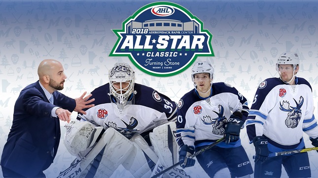 Winnipeg, MB – The Manitoba Moose Hockey Club, in conjunction with the American Hockey League, are proud to announce the Moose will be represented by goaltender Michael Hutchinson, forward Jack Roslovic, defenceman Cameron Schilling and head coach Pascal Vincent at the 2018 AHL All-Star Classic presented by Turning Stone Resort Casino in Utica, N.Y.