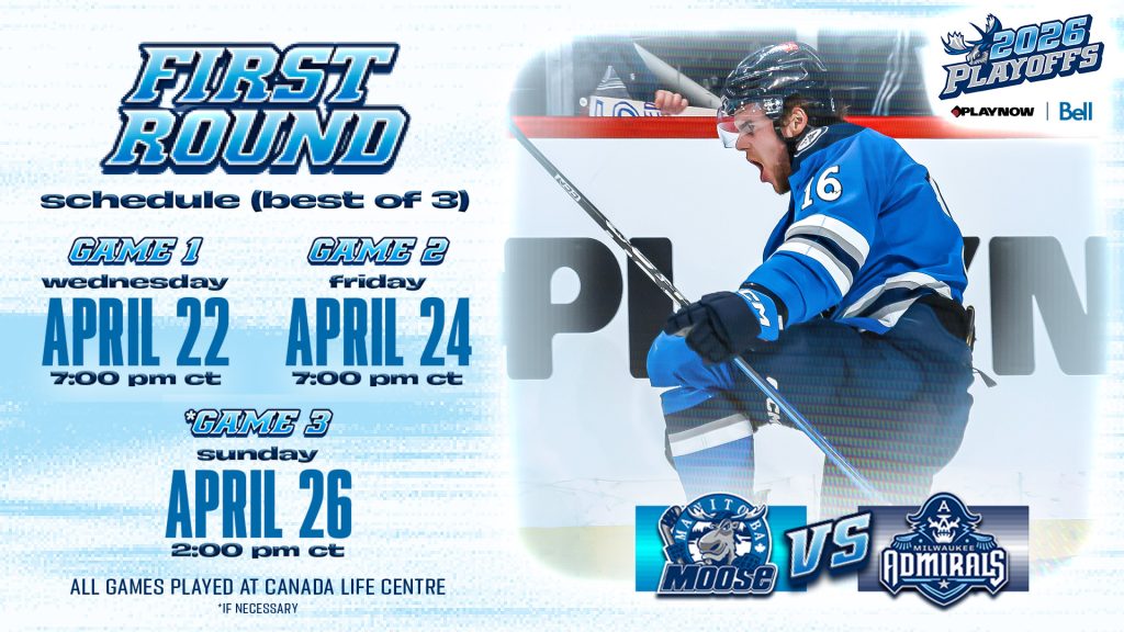 The Manitoba Moose embark on their quest for the Calder Cup on Wednesday, April 22 on home ice at 7 p.m. CT. The Moose face the Milwaukee Admirals in a best-of-three First Round series at Canada Life Centre.