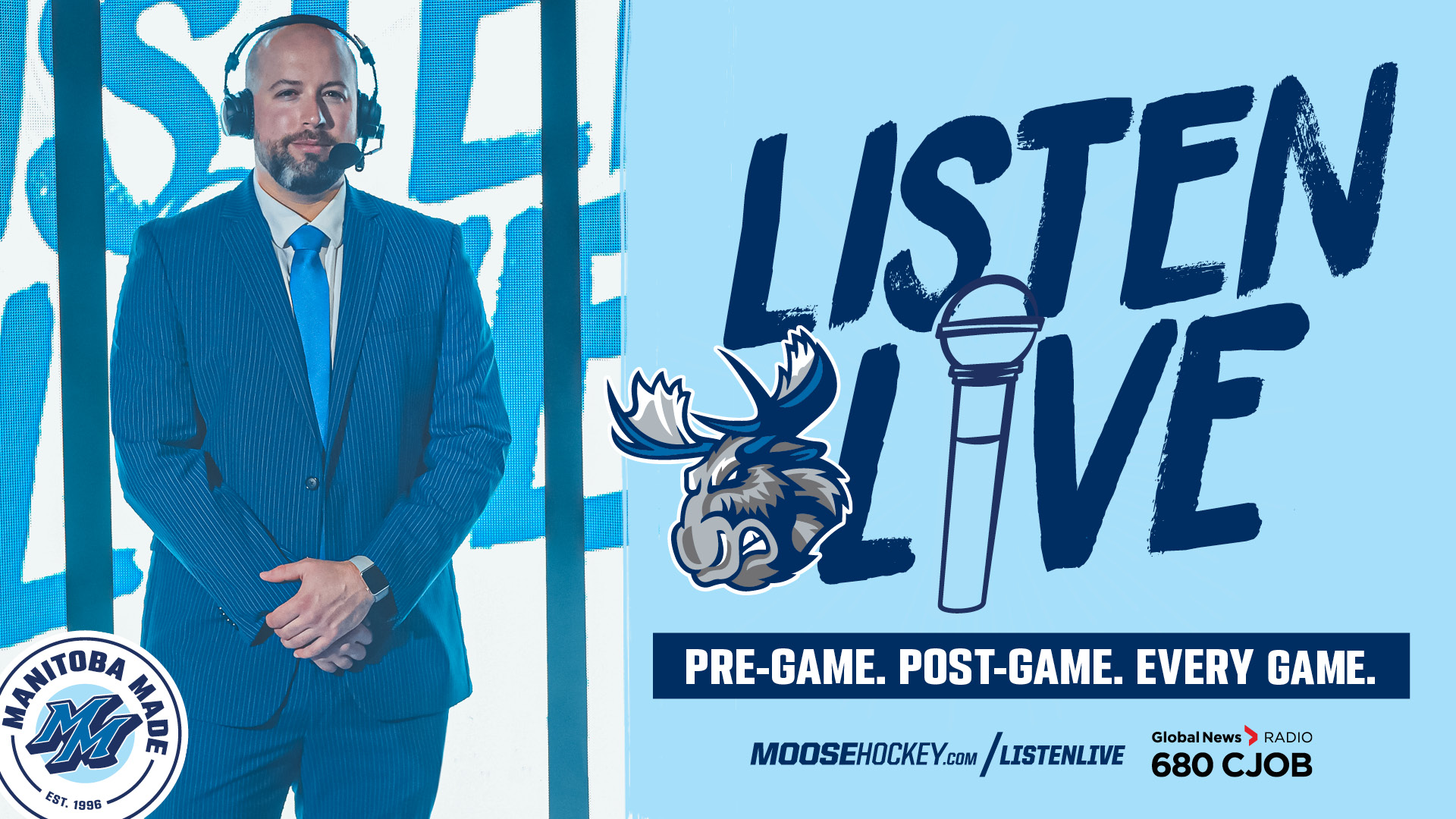 All 72 regular season Moose games will stream at CJOB.com/sports (direct link: manitobamoose.leanplayer.com), MooseHockey.com/LISTENLIVE and the Winnipeg Jets App. Daniel Fink returns for his fifth season as the play-by-play voice of the Moose. Broadcasts begin 15 minutes prior to puck drop and games will be followed by a post-game show to wrap up the action.
