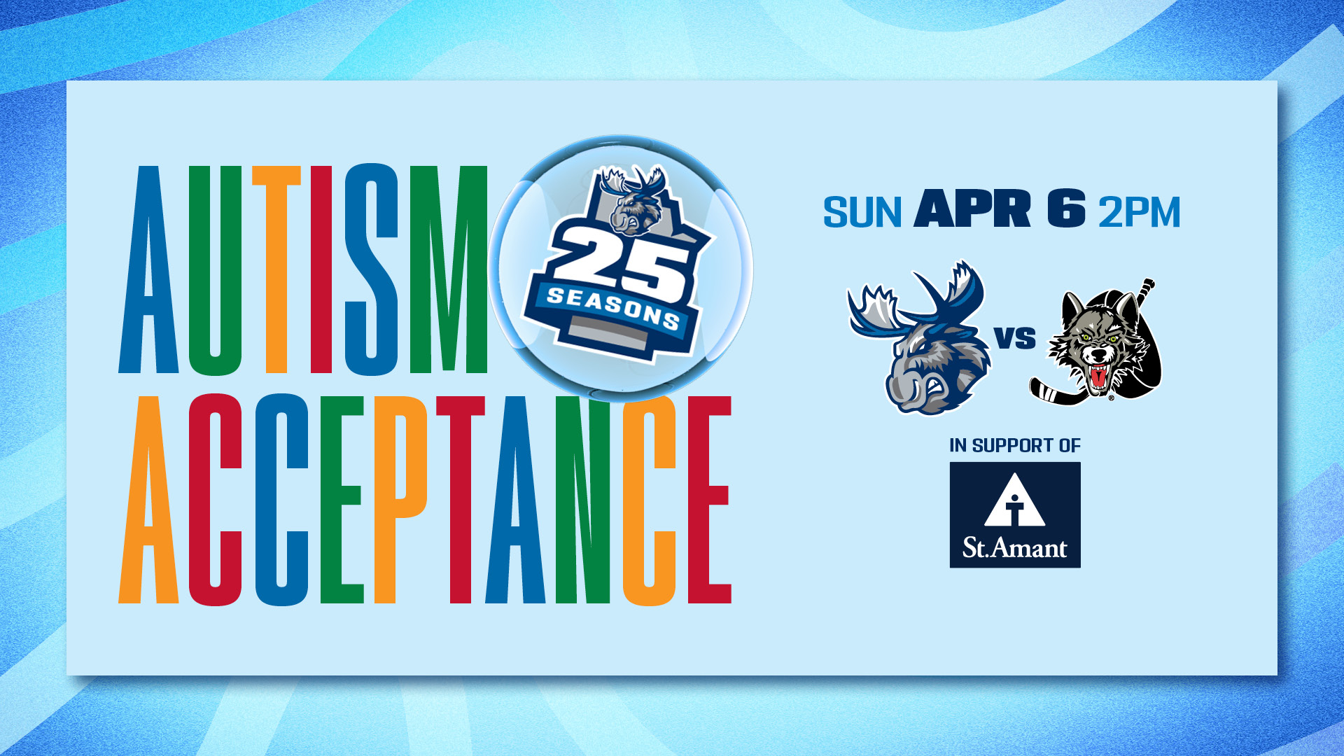 The Manitoba Moose Hockey Club is proud to announce the beginning of this season’s Autism Acceptance campaign, in support of St.Amant Foundation. The campaign is highlighted by the Autism Acceptance Game on Sunday, April 6 at 2 p.m. CT when the Moose face the Chicago Wolves at Canada Life Centre.