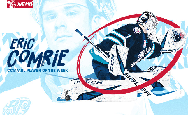 The Manitoba Moose Hockey Club, in conjunction with the American Hockey league, announced today goaltender Eric Comrie is the CCM/AHL Player of the Week for the period ending Jan. 20.