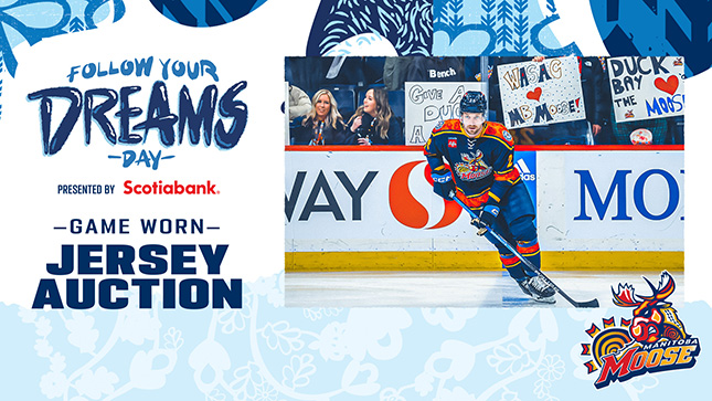The Manitoba Moose Follow Your Dreams Day jersey auction is now live and closes March 10. Proceeds from the jersey auction support Winnipeg Aboriginal Sport Achievement Centre (WASAC).