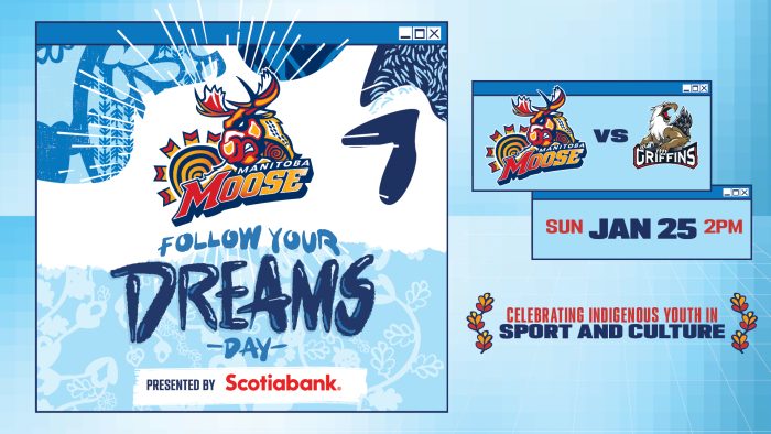 The Manitoba Moose Follow Your Dreams Day will follow on Sunday, Jan. 25 at 2 p.m. when the Moose face the Grand Rapids Griffins. Krista Rey will sing the anthems and hoop dancer Rylee Sandberg, fiddle player Kieran Maytwayashing and the Buffalo Red Thunder singers will perform pre-game and during intermissions.