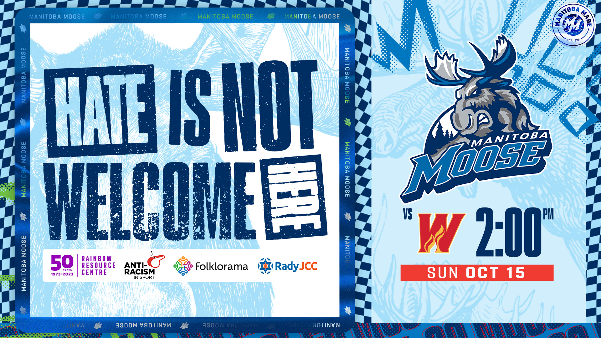 On October 15, the Manitoba Moose will face off against hate as they take on the Calgary Wranglers at Canada Life Centre at 2:00 p.m.
