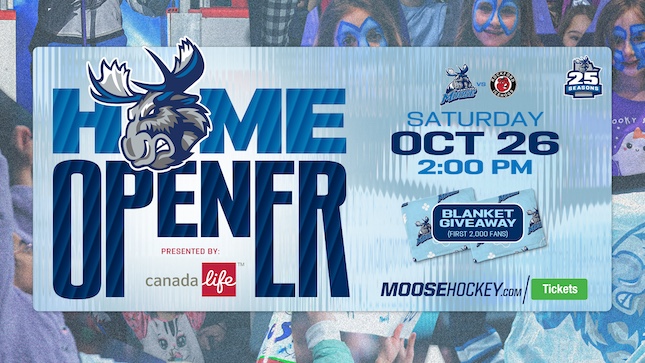 The 2024 Manitoba Moose Home Opener, presented by Canada Life, is quickly approaching with puck drop on Saturday, Oct. 26 at 2 p.m. Tickets are available at MooseHockey.com/TICKETS.
