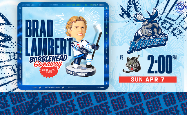 Want to own an iconic piece of Moose memorabilia? Make your way to Canada Life Centre on Sunday, April 7 at 2 p.m. for the second and final mini bobblehead giveaway of the 2023-24 season! Fans will have the chance to collect the bobblehead of current Moose forward and 2022 first round Winnipeg Jets draft pick, Brad Lambert!