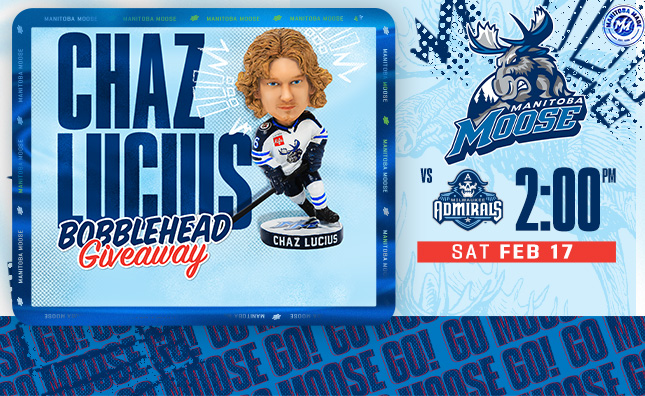Want an iconic piece of Moose memorabilia? Make your way to Canada Life Centre on Saturday, February 17th at 2 p.m. for the first mini bobblehead giveaway of the 2023-24 season! Fans will have the chance to collect the bobblehead of current Moose forward and first round Winnipeg Jets draft pick, Chaz Lucius!