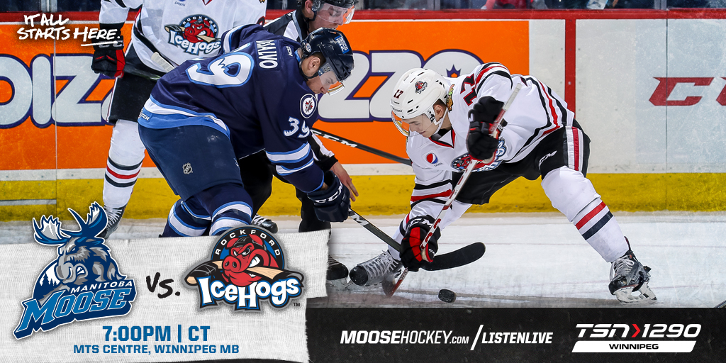 The Manitoba Moose (23-32-4-4) continue their eight-game home stand tonight as they welcome the Rockford IceHogs (21-30-9-3) to MTS Centre at 7 p.m. CT.