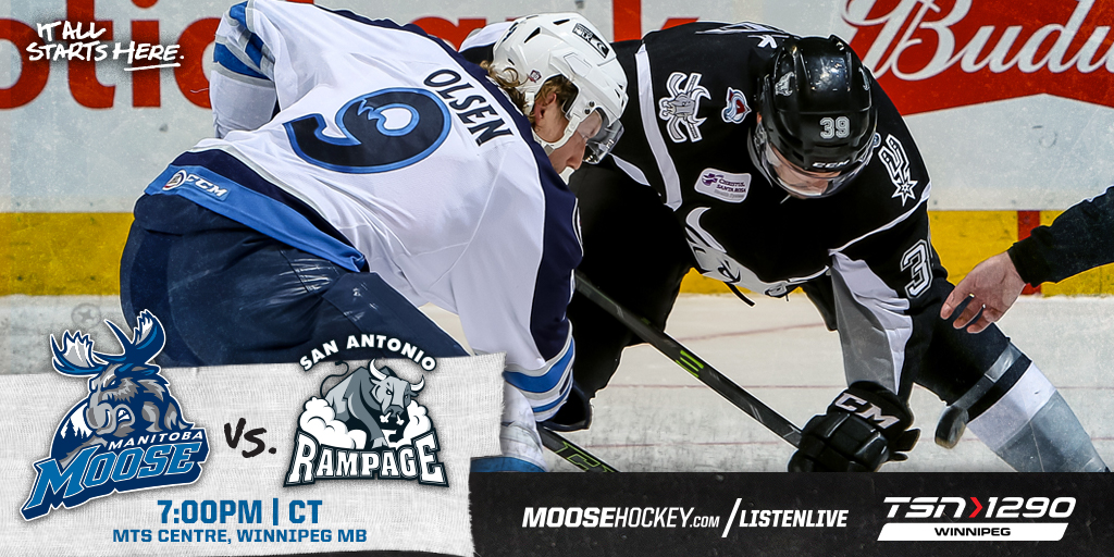 For the first time this season, the San Antonio Rampage (21-27-4-1) charge into MTS Centre at 7 p.m. CT tonight as they open a two-game weekend set with the Manitoba Moose (19-27-3-4).