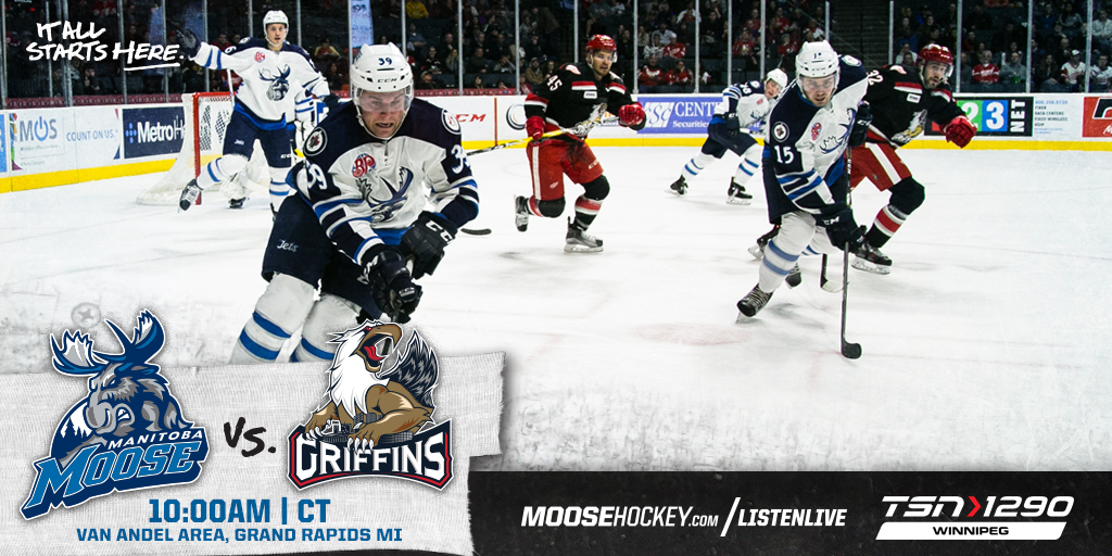 In a rare 10 a.m. CT puck drop, the Manitoba Moose (19-23-3-3) pay a visit to Van Andel Area this morning where they’ll face off against the Grand Rapids Griffins (31-14-1-2).