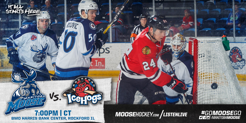 The Manitoba Moose (22-27-3-4) open the month of March on the road when they take on the Rockford IceHogs (21-27-8-3) tonight at 7 p.m. CT.