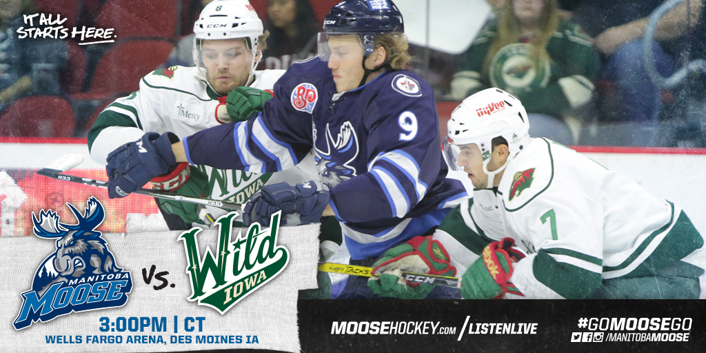 The Manitoba Moose (11-11-2-2) open up their final series before the holiday break this afternoon as they pay a visit to Des Moines, IA for a battle with the Iowa Wild (12-13-2-1) at 3:00 p.m. CT.