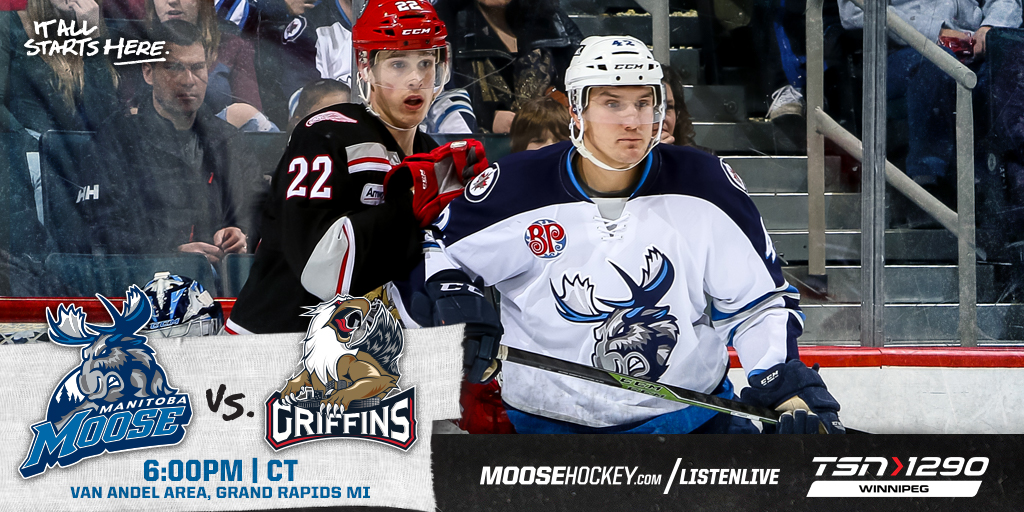 Following a quick two-game home stand, the Manitoba Moose (18-22-3-2) head out on the road where they’ll begin a six-game swing tonight against the Grand Rapids Griffins (29-13-1-2) at 6 p.m. CT.