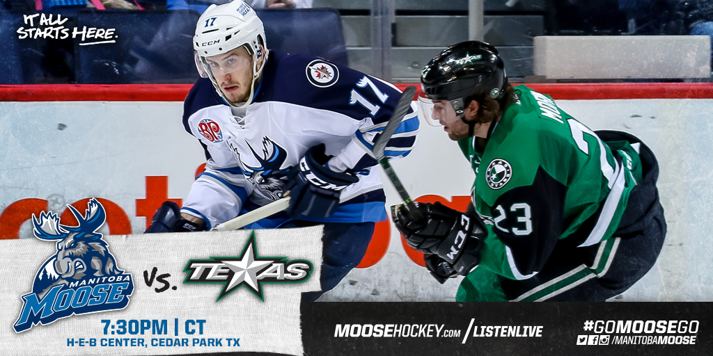 Looking to avenge a 4-3 loss last Wednesday (Jan. 18), the Manitoba Moose (16-19-3-2) head back to the H-E-B Center to close out the Texas portion of their road trip against the Texas Stars (20-16-1-2) at 7:30 p.m. CT.