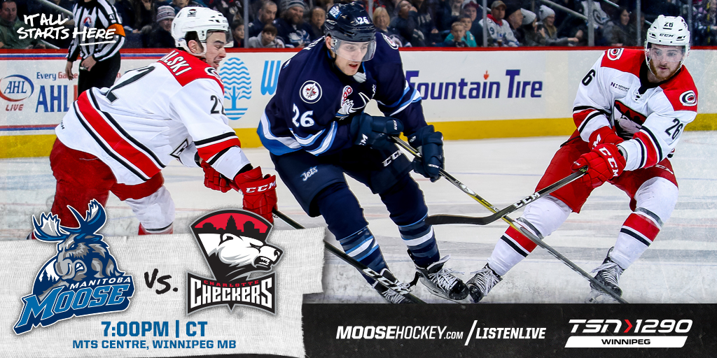 The Manitoba Moose (23-28-4-4) open up their season long eight-game home stand this evening when they welcome the Charlotte Checkers (26-27-4-0) back to MTS Centre at 7 p.m. CT.
