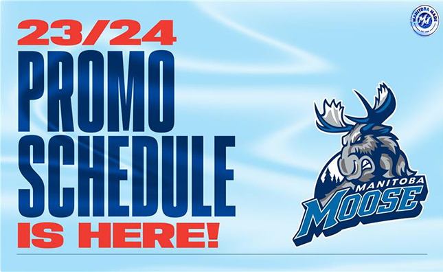 The Manitoba Moose Hockey Club revealed today the team's 2023-24 Promotional Schedule. This season's calendar features a theme, giveaway or community initiative on 29 of 36 games.