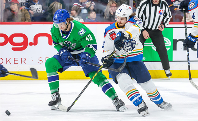 The Manitoba Moose (34-23-5-4) rematched with the Abbotsford Canucks (37-23-3-4) on Saturday afternoon at Canada Life Centre. Manitoba was coming off a 4-2 defeat at the hands of the Canucks on Thursday evening.