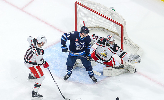Neither side was able to find twine through the opening 20 minutes of play. Manitoba was granted three chances on the power play, while Grand Rapids claimed a pair of opportunities. Oskari Salminen vacuumed up the only Griffins shot he saw in the frame, while Ryan Bednard made 10 saves as the horn sounded to draw the frame to a close.
