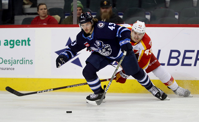 The Manitoba Moose (12-7-2-1) rematched with the Calgary Wranglers (16-7-1-0) Thursday evening at Scotiabank Saddledome. It was the final game of the regular season series between the Moose and Wranglers. Manitoba was coming off a 4-1 road win against Calgary on Tuesday evening.