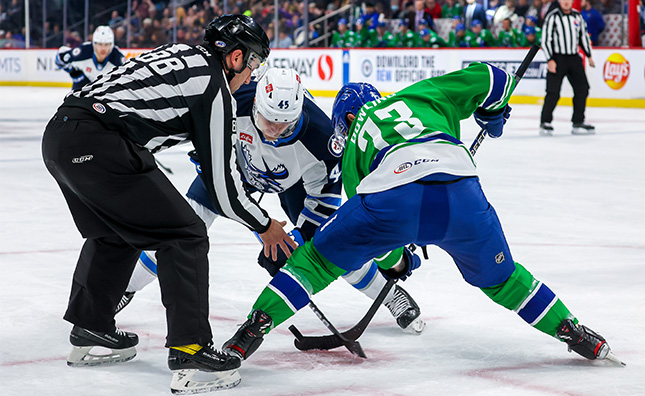 Abbotsford took the lead halfway through the third as local product Jett Woo finished off a two-on-one rush to put the Canucks up 3-2. Manitoba needed offence and pulled netminder Salminen in favour of the extra attacker, but the Canucks grabbed the puck and added some insurance in the form of an empty net tally from Nils Hoglander. The Moose pulled Salminen for a second time and Justin Dowling cashed into the empty net for a 5-2 Abbotsford advantage. Salminen was hit with the loss and made 28 saves, while Silovs captured the win with 13 stops of his own.