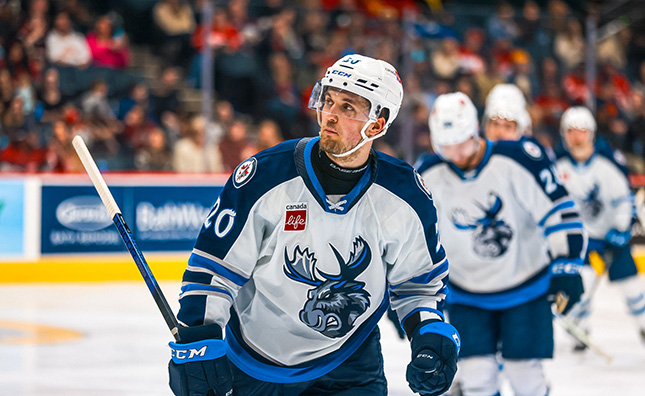 The Moose tangle with the Calgary Wranglers at Scotiabank Saddledome on Tuesday, Feb. 13. Puck drop is scheduled for 8 p.m. CT.