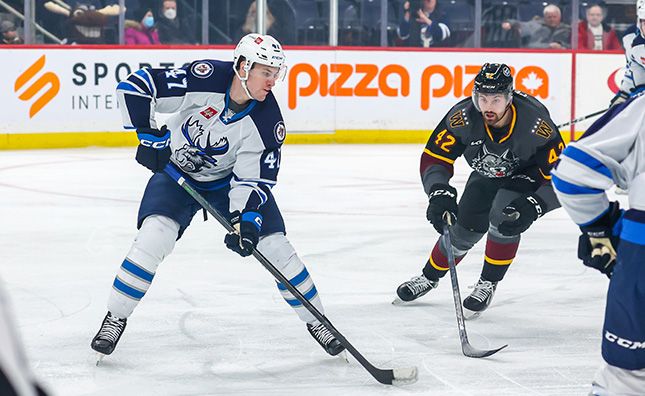 The Manitoba Moose (19-13-2-1) rematched with the Chicago Wolves (13-18-3-1) on Wednesday evening at Canada Life Centre. Manitoba was coming off a 2-0 win over the Wolves yesterday night and had won two straight.