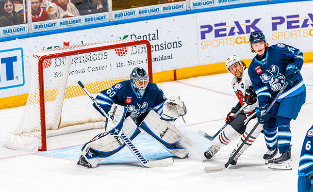 Rockford opened the scoring halfway through the first period. Ethan Del Mastro’s slick move got the puck to Cole Guttman, who skated off the wing and lifted the puck over a sprawling Collin Delia. Rockford added to its lead 19 seconds later, as David Gust burned down the ice and roofed a shot past the blocker of Delia. The IceHogs posted another goal with less than five to play in the frame. With Rockford on the power play, Colton Dach sent the feed to Ryder Rolston, who one-timed it into the back of the net. Jaxson Stauber, who was making the start for the IceHogs, ended the frame with seven stops. Manitoba trailed 3-0 heading into the first intermission.