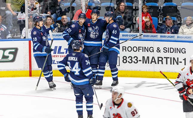 Rockford opened the scoring before the game was five minutes old. Brett Seney took advantage of a two-on-one break and slid the puck past Oskari Salminen to push the home side ahead 1-0. It was the first time this season that Manitoba surrendered the opening goal of the contest. The Moose fought back and tied the game late in the frame. Ville Heinola gathered up the puck and put a shot on Dylan Wells. Jansen Harkins jumped on the rebound and tied the game with a hard shot. Manitoba took a 1-1 tie into the first intermission. Shots were even at eight for both sides.