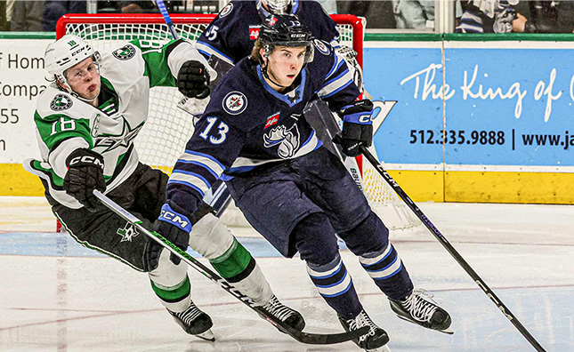 The extra frame was filled with chances for both sides, including a late Texas power play, but neither netminder was willing to concede, so the game continued to a shootout. All three Texas skaters were denied by Salminen in the shootout. Brad Lambert got the shootout’s only tally, beating Murray through the wickets with a quick snap shot. Salminen captured the Moose victory and ended the game with 24 stops, while Murray was hit with the loss and made 36 saves of his own.