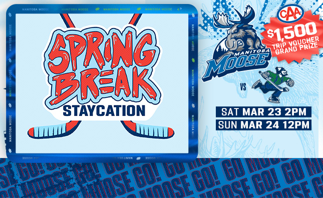 It’s time to kick back and relax as the Moose host a quartet of Spring Break Staycation Games on Saturday, March 23, Sunday, March 24, Wednesday, March 27 and Friday, March 29.