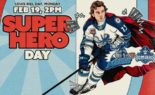 Everybody needs a hero! The Moose will be hosting their Super Hero Day Game on Louis Riel Day, Monday, February 19th at 2 p.m. where they’ll face the Milwaukee Admirals.