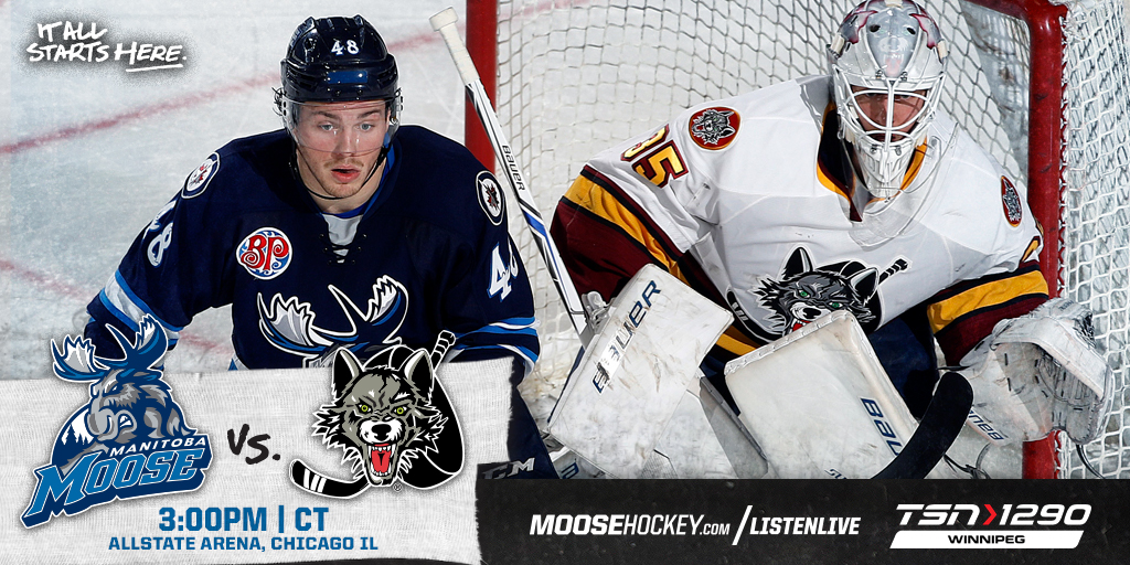 The Manitoba Moose (23-27-4-4) wrap up a four-game road trip this afternoon when they take on the Chicago Wolves (34-17-4-3) at 3 p.m. CT inside Allstate Arena.