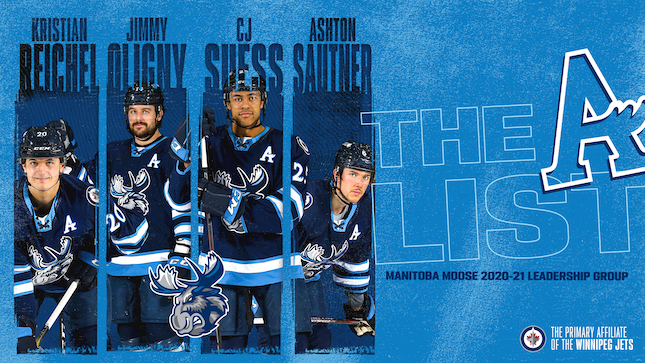 The Manitoba Moose Hockey Club announced today its Opening Night Roster for the 2020-21 season. The club also announced forwards Kristian Reichel and C.J. Suess along with defencemen Jimmy Oligny and Ashton Sautner will all serve as alternate captains for the campaign.