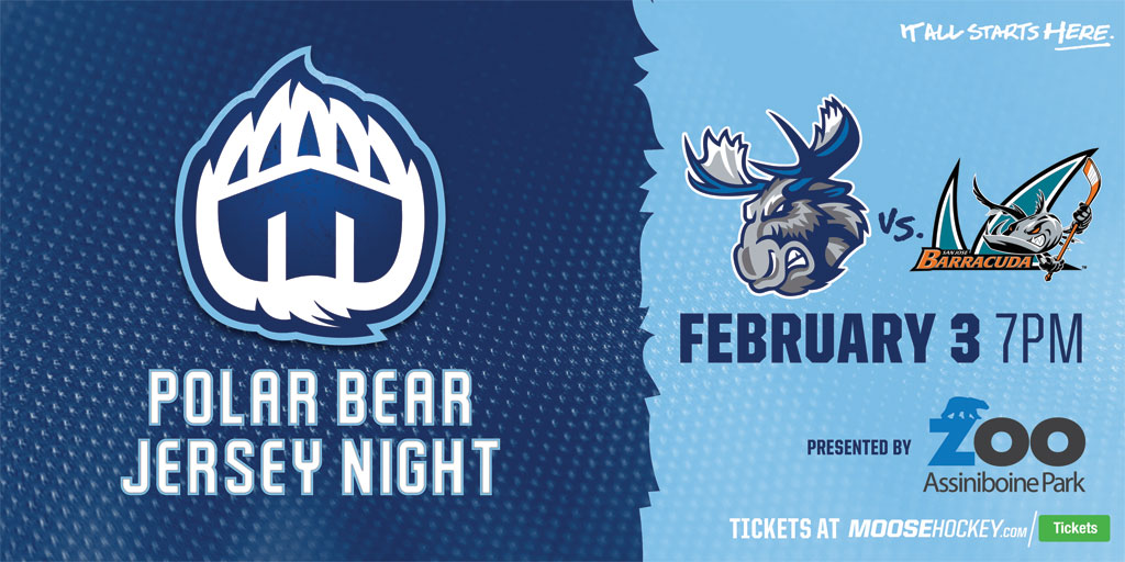 The Manitoba Moose are set to host Polar Bear Jersey night next Friday, Feb. 3 at 7 p.m.