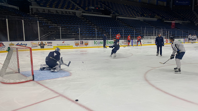 The Manitoba Moose held practice Monday morning at BMO Harris Bank Center as they look to close out their seven-game road trip on a winning note Tuesday night in Rockford.